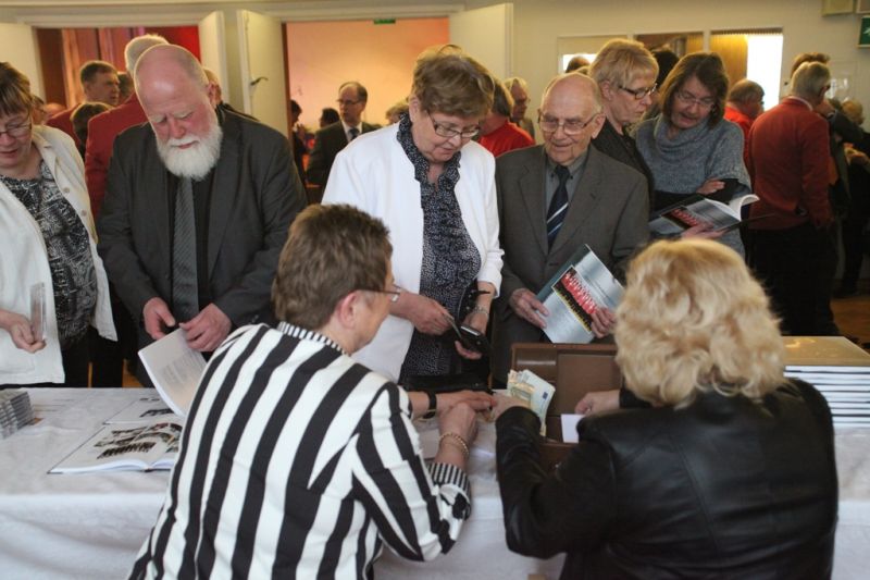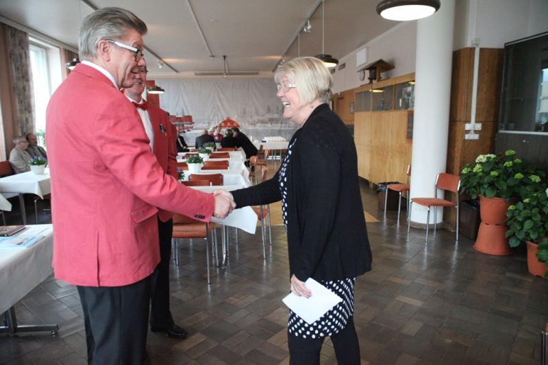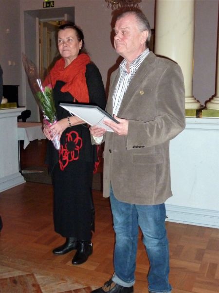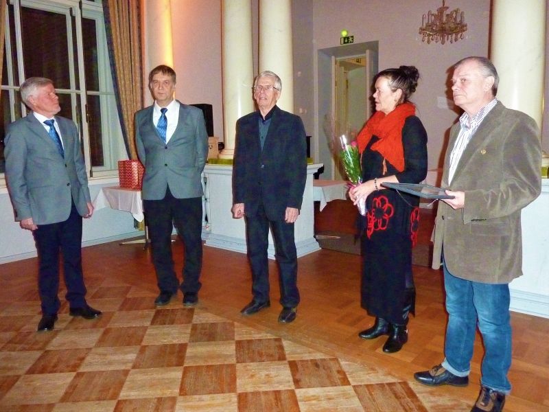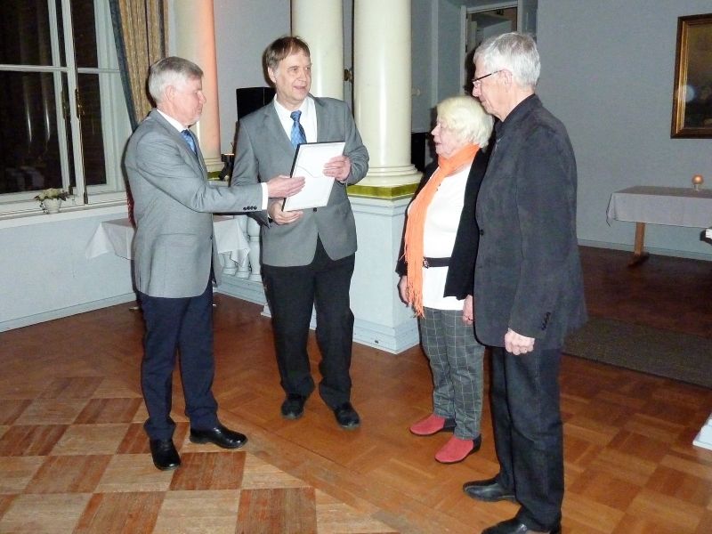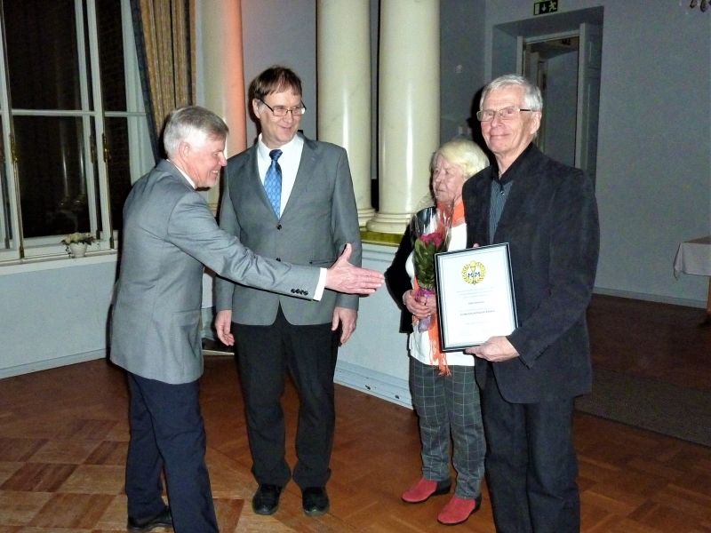 Sihteeri aloittaa onnittelun.. Risto esittelee kunniakirjaa..