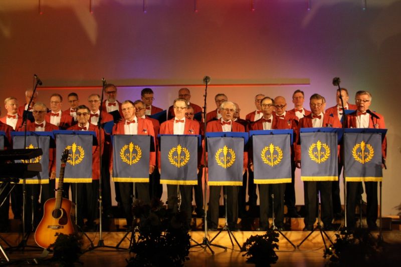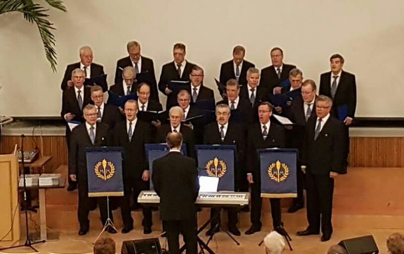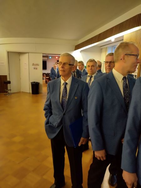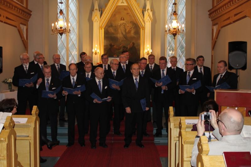 Kuoro valmiina laulamaan suomalaisten miesten lauluja