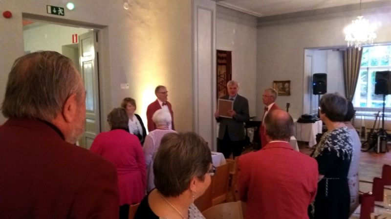Martti Salorinne kunniajäseneksi kuoron juhlassa KVL upseerikerholla 16.9.2016.