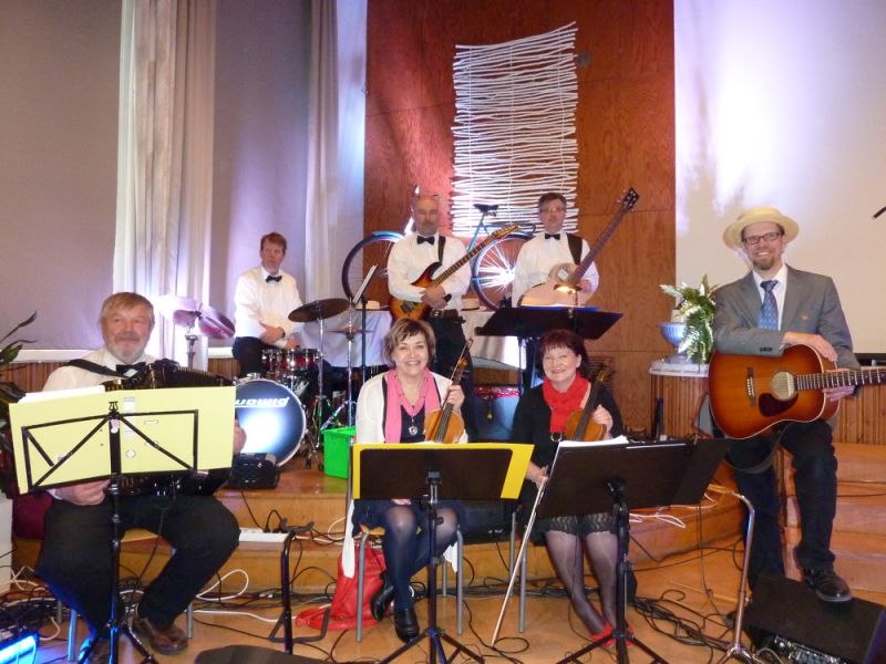 Vokki-yhtye sekä hanuristi Markku Seppälä säestivät